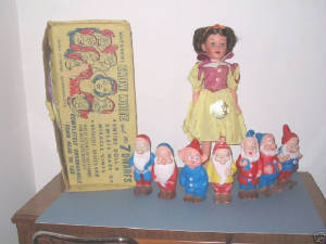 And you! You saw that Snow White doll and it was full-blown love. And when you opened the box and took out the doll, you saw that the cardboard scene behind the doll lifted out. And guess what was behind the cardboard? Why it was all the seven dwarfs. Dad didn’t even know that he hadn’t bought one doll, he bought eight!”
