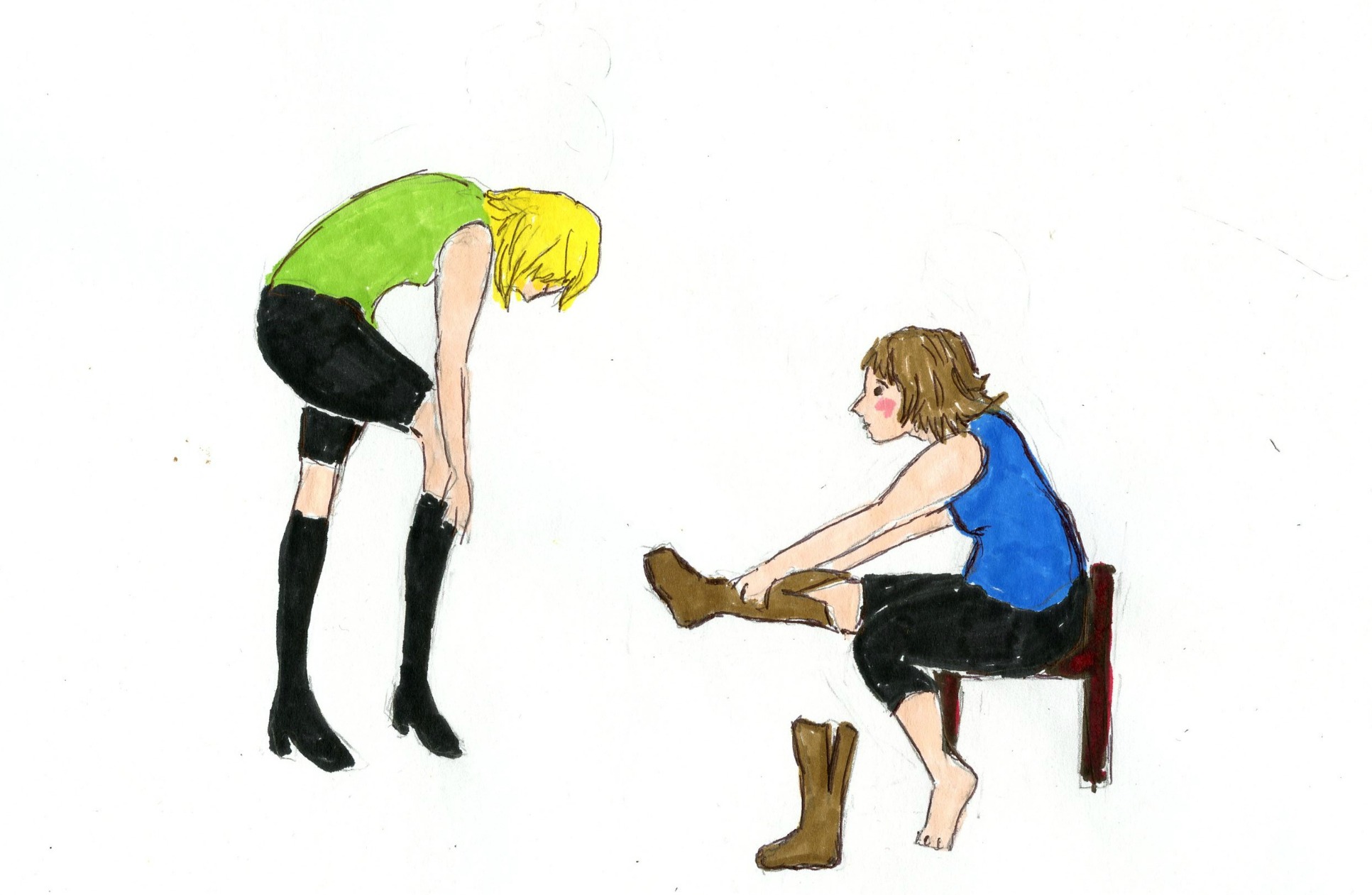 But here was the amazing part: While I struggled to get the two sides of the zipper to meet around my calf, this young thing’s boots were already zipped. She must have pulled them off without bothering to unzip them. And then she put them back on the same way. She just pulled them on.