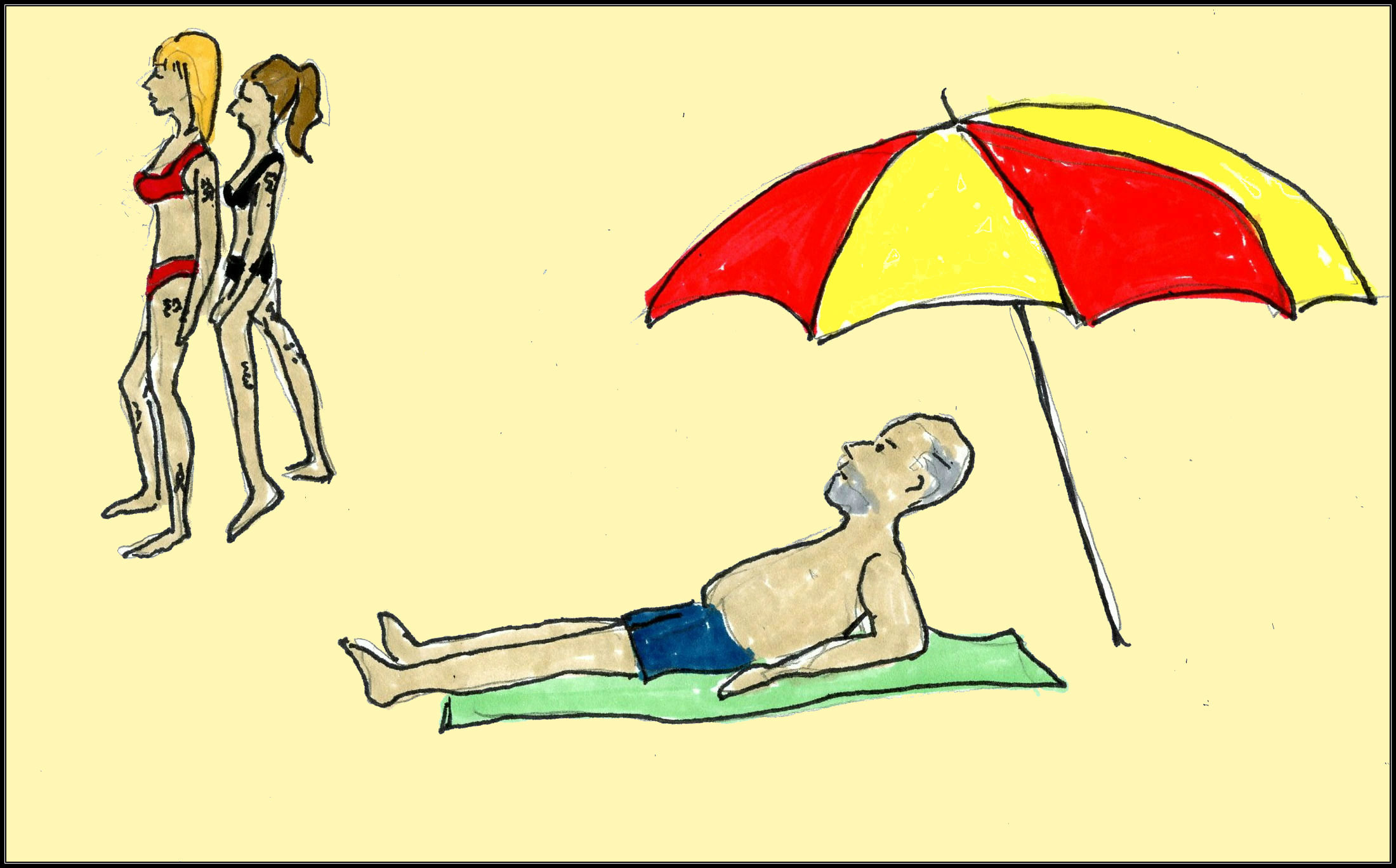 He can’t even pretend on that one. I’ve been to the beach with him. All those bikinis. But let him look. At his age, no one looks back. And besides, tattoos gross him out. That makes me the most attractive woman on the eastern seaboard. Score: 3 on the I-Love-Wedgies meter.