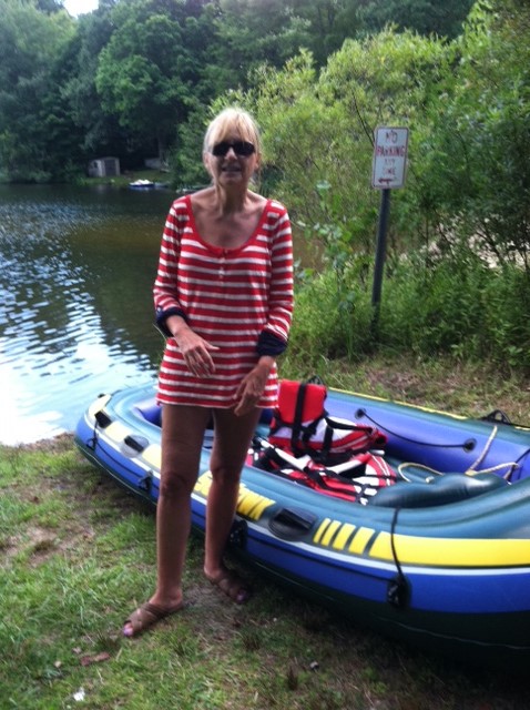 But I did it. I rowed all the way back. I only hit one dock. My husband is very sunburned because the trip took a little longer than we expected. He offered to take back the rowing chores several times, but NO WAY. When I am determined, just forget about it.