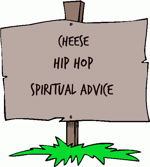 What I want to know is, in what order do they serve? Do they give spiritual advice while munching on cheese followed by a bit of hip hop? Or do you start with hip hop, & then based on your dance moves, they determine what kind of spiritual advice to deliver, giving you some cheese while you ponder their advice. Or do they start with cheese? So many questions!